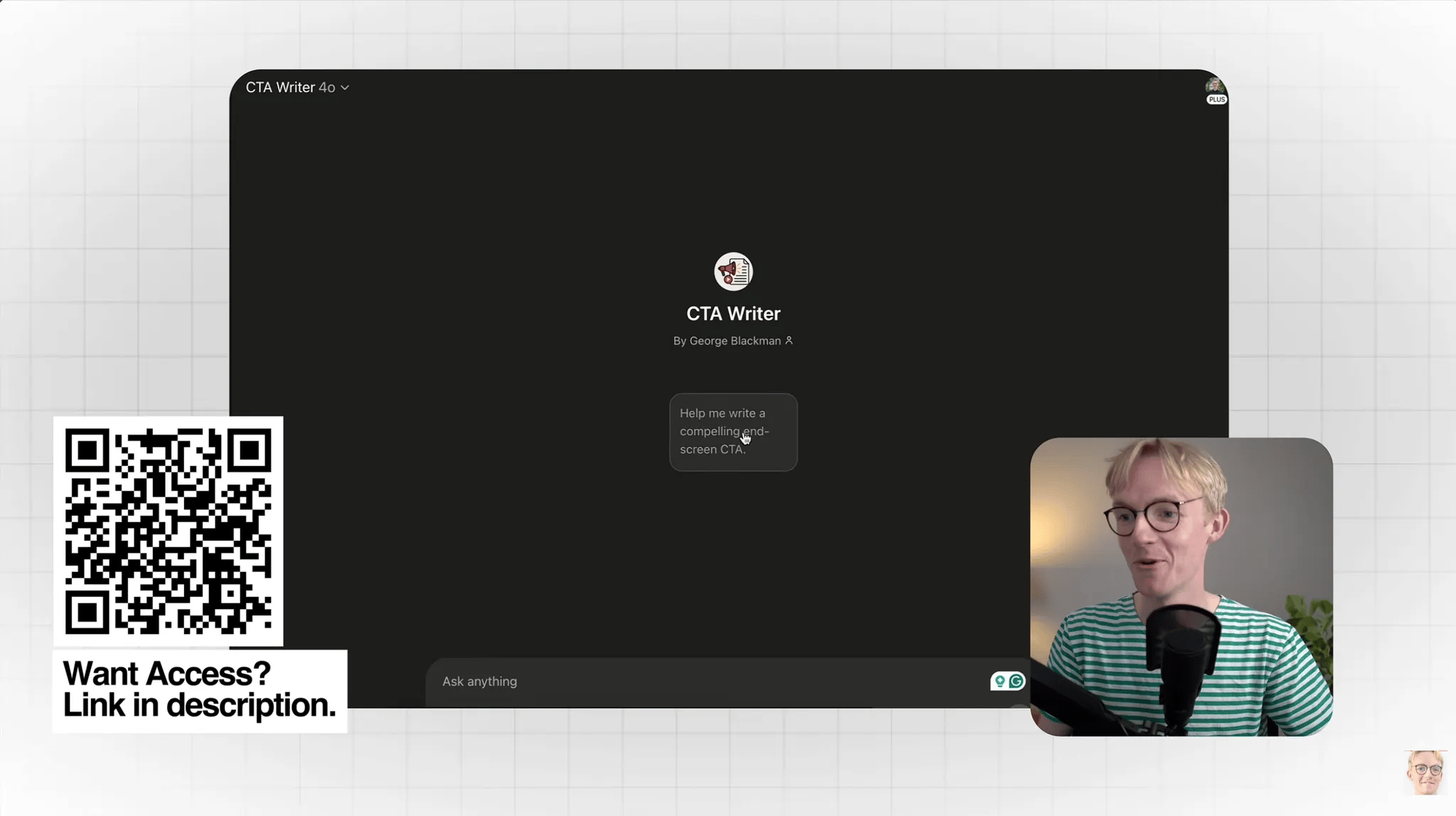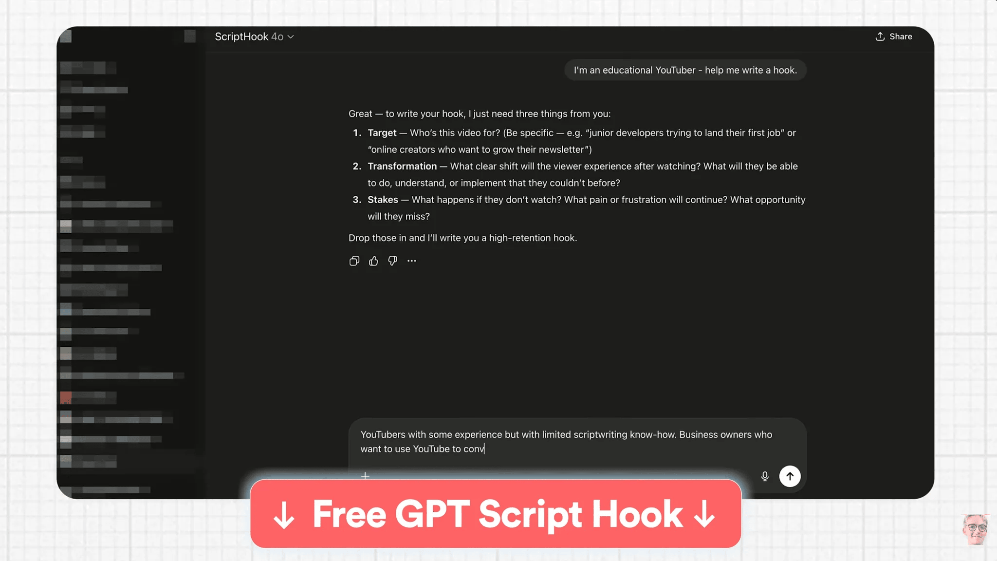 After teaching a scriptwriting principle, I casually mention that the viewer can speed up implementation with a free custom GPT.