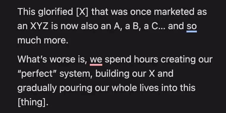AI has those vocal "ticks" that completely wreck a first draft.